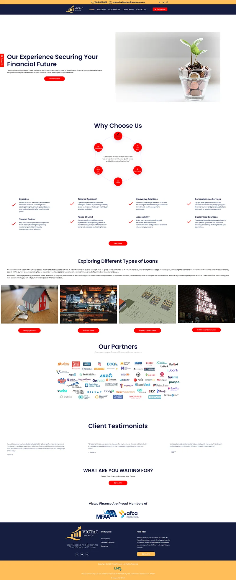 To design a highly professional and trustworthy digital platform for Victac Finance. The primary goal was to establish immediate market credibility, clearly communicate a diverse range of loan services, and generate qualified leads for high-stakes financial guidance.
